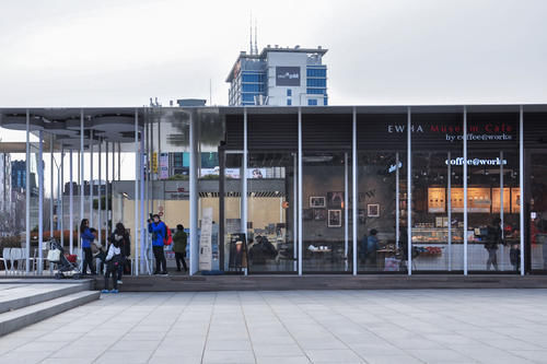 梨大校门口有一家很出名的咖啡店,在结束校园观光后,可以坐下来享受一杯精致的韩式咖啡。